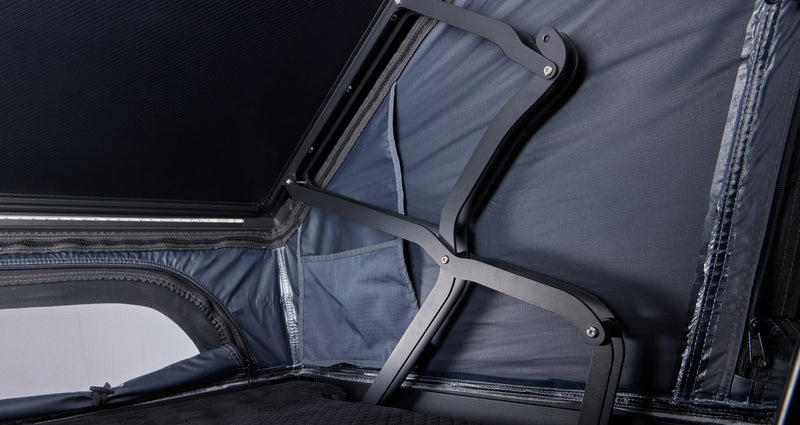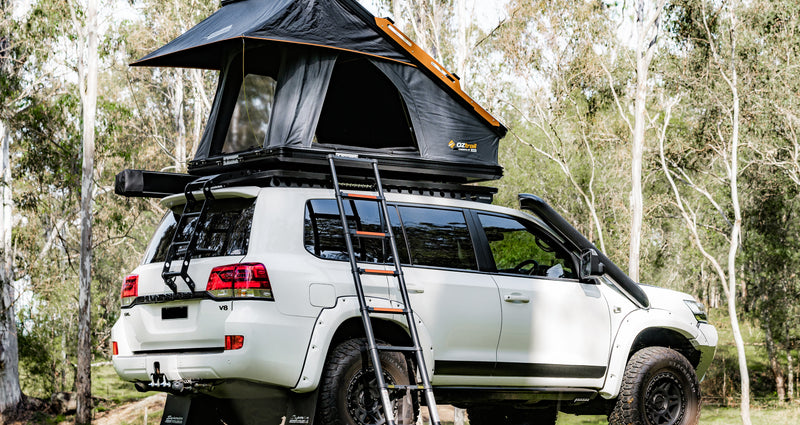 The Canning 1300 is a rugged hard-shell roof top tent, featuring 280gsm Ripstop polycotton canvas, a 50mm memory foam mattress, and an aerodynamic design. It offers additional roof storage with fitted roof bars.