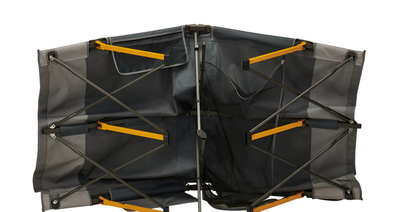 The OZtrail Easy Fold Stretcher – Queen is a game changer for campers seeking greater comfort and convenience in a camp stretcher. Designed to fit Queen size Leisure Mats or air mattresses, this OZtrail Easy Fold Stretcher offers unmatched support, making it ideal for two people looking for a spacious and comfortable sleeping area.