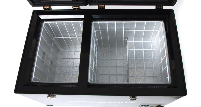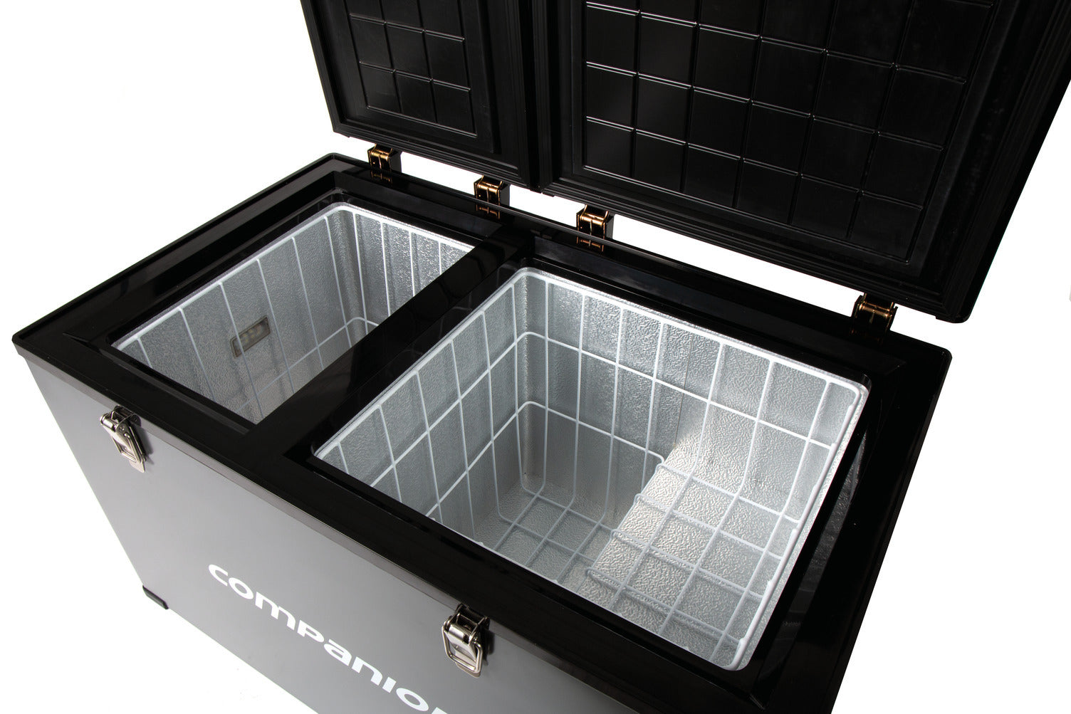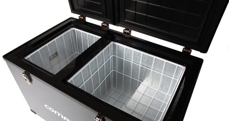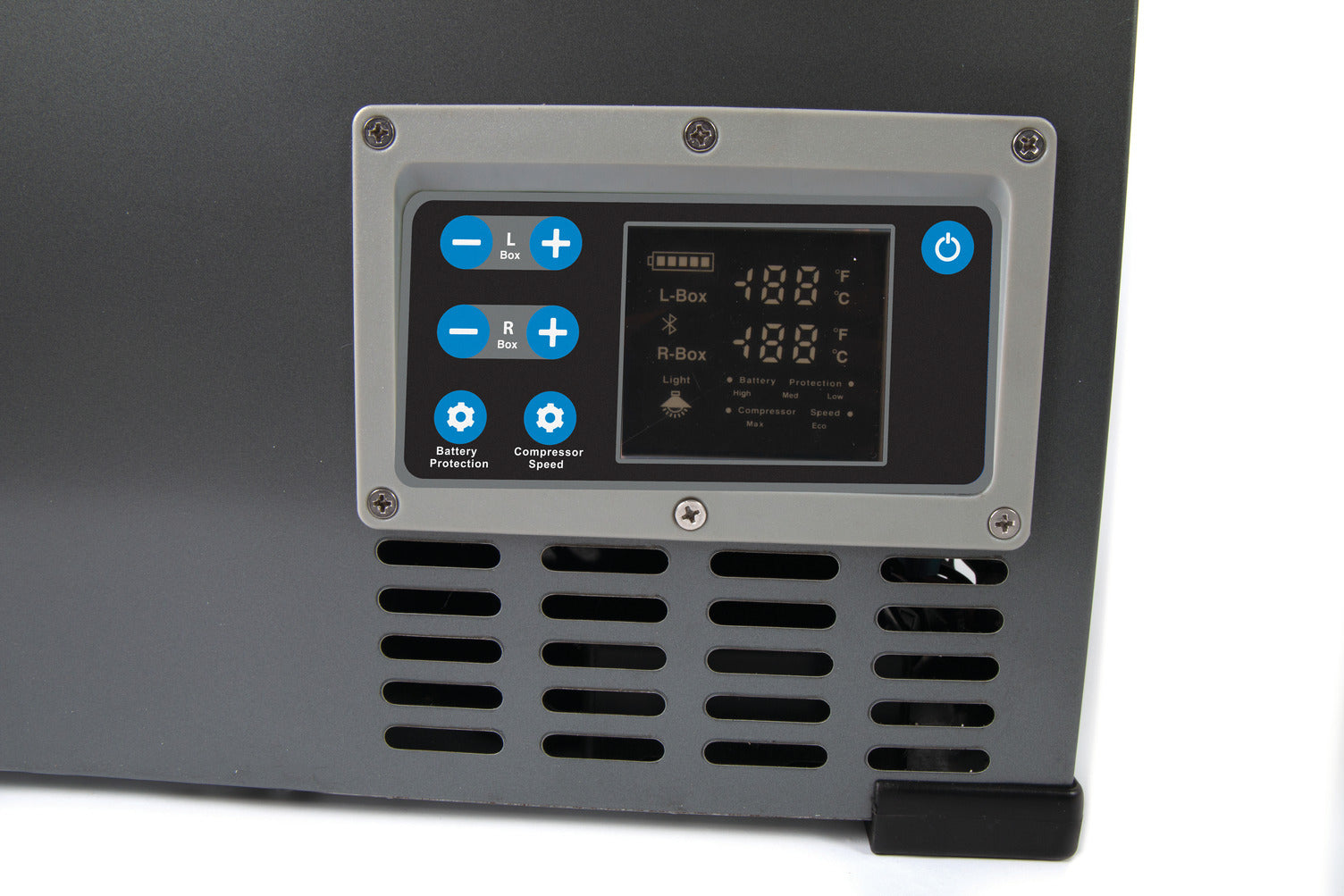 The 100L Dual Zone Fridge/Freezer is ideal for camping and recreation, offering a robust metal construction and dual speed LG compressor. It provides ample space and features a digital display control panel.Features: Soft close lid...