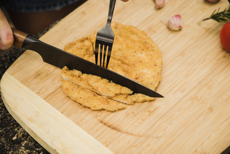 This 3-piece premium knife set features a chef knife, bread knife, and paring knife. Made from stainless steel with acacia wood handles, it comes with a cotton roll pouch for protection and easy transport.