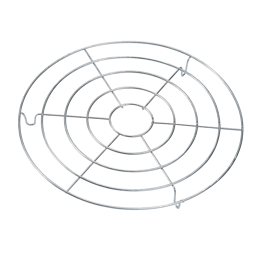 This steel steamer rack fits perfectly in a 4.5QT Dutch oven. It features raised feet for better steaming and even cooking results.