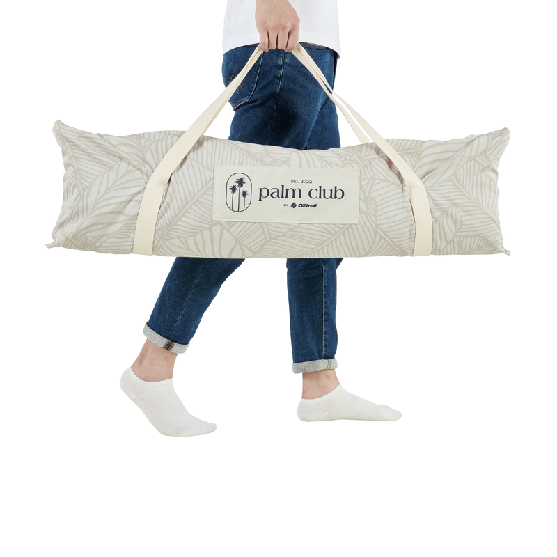 This vintage-style beach tent provides premium UV50+ protection with a reversible canopy. It can be set up in either an A-frame or L-frame for added flexibility and includes tassel details for style.