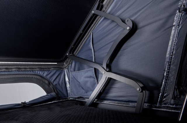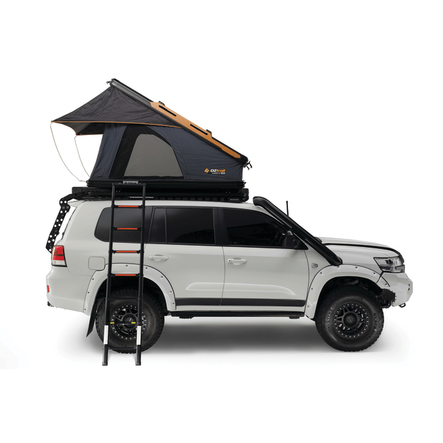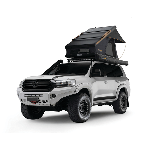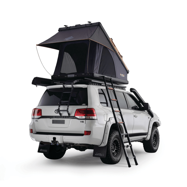 The Canning 1300 is a rugged hard-shell roof top tent, featuring 280gsm Ripstop polycotton canvas, a 50mm memory foam mattress, and an aerodynamic design. It offers additional roof storage with fitted roof bars.