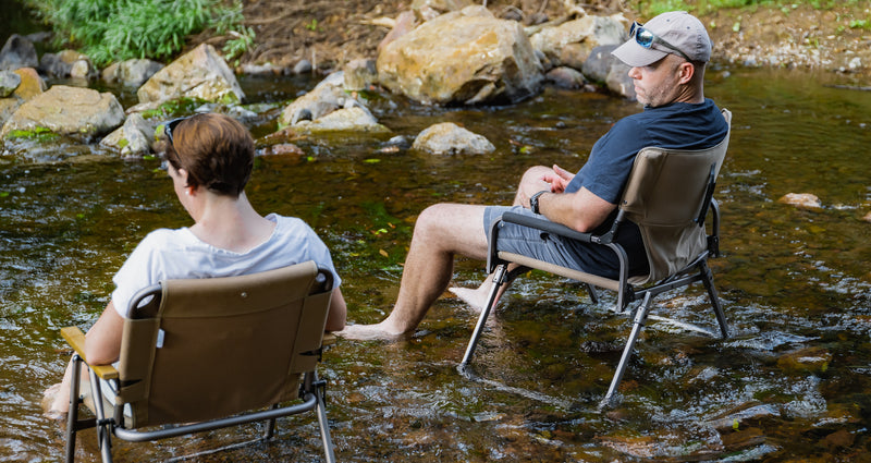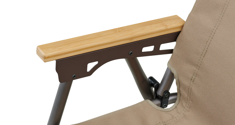 This low chair is perfect for the beach, picnics, or sitting by the fire. It features heavy-duty canvas fabric and a lightweight aluminium frame. The eco-friendly design includes sustainably sourced bamboo armrests for added comfort and convenience during outdoor activities.