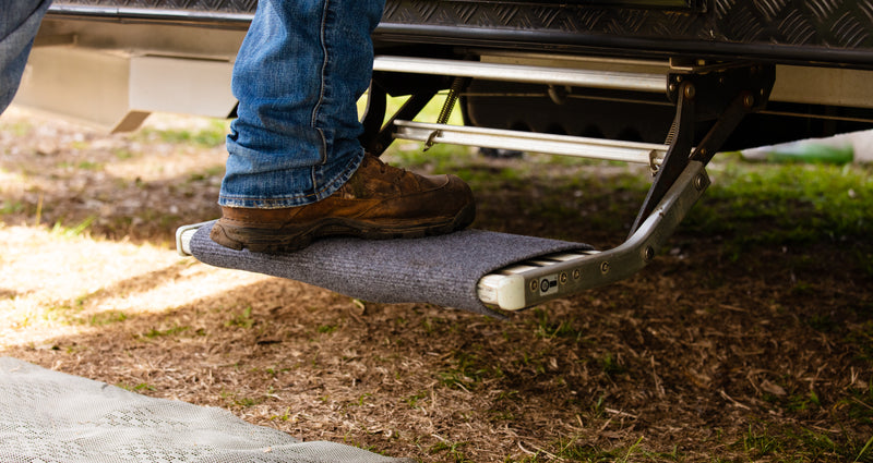 Soft and durable step rug designed to fit caravan or RV steps. It provides a better grip to prevent slips and helps keep unwanted dirt from entering your caravan.