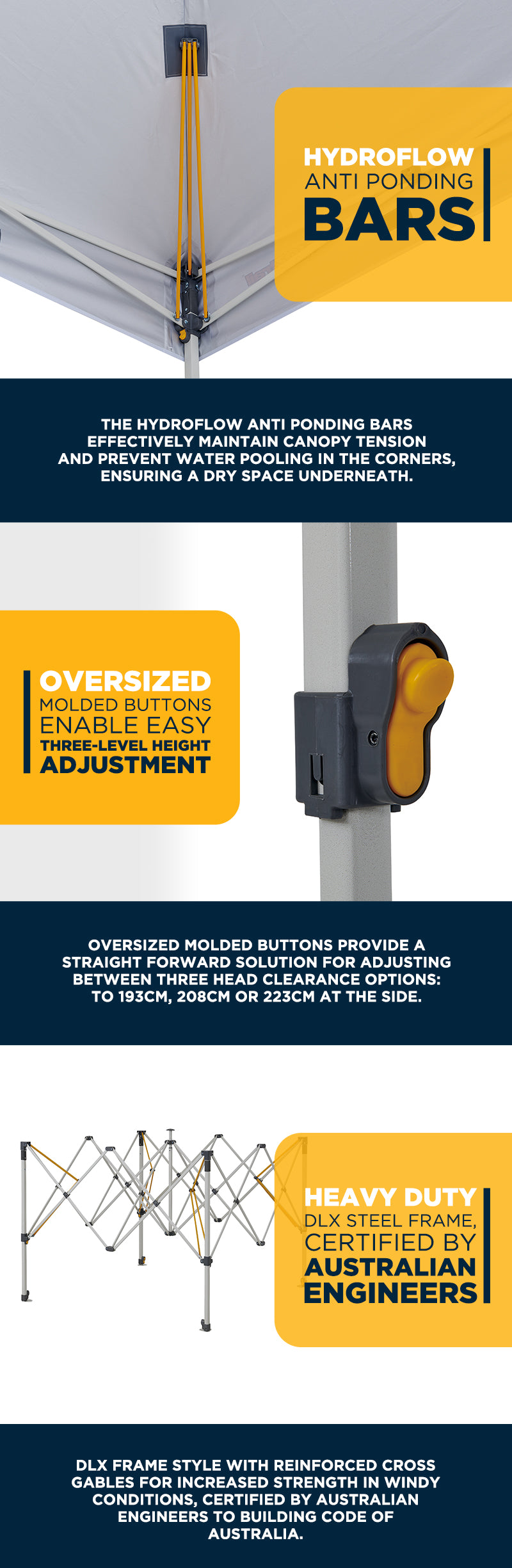 Built for frequent use and extremely durable, the Commercial Deluxe 3.0 Gazebo is a commercial gazebo 3x3 designed to handle sporting events, school events, yard sales, and other upcoming outdoor activities with ease. Its Hydro...