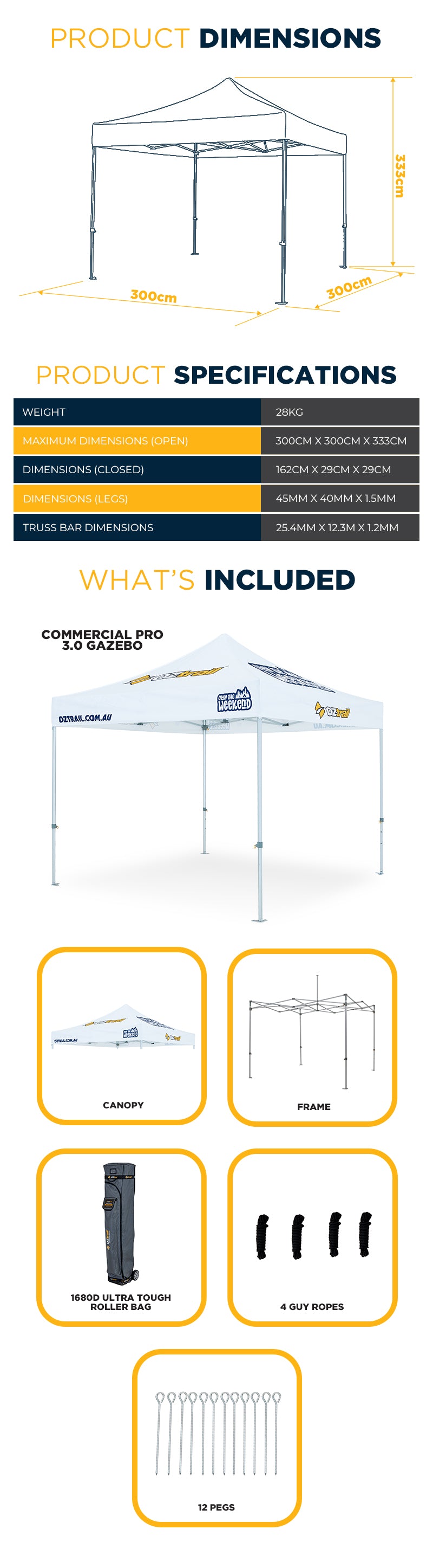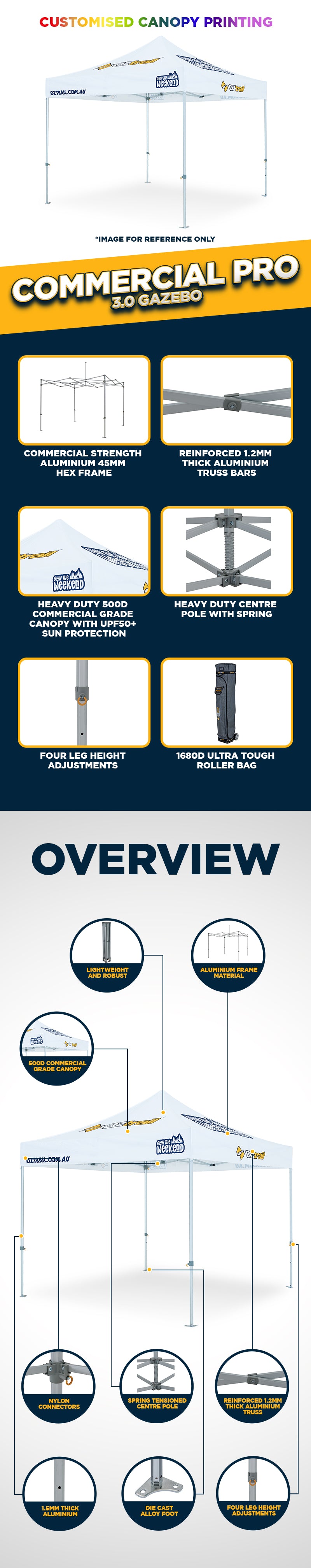 Commercial Pro Aluminium 3.0 Gazebo - Custom Printed