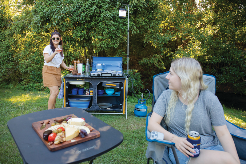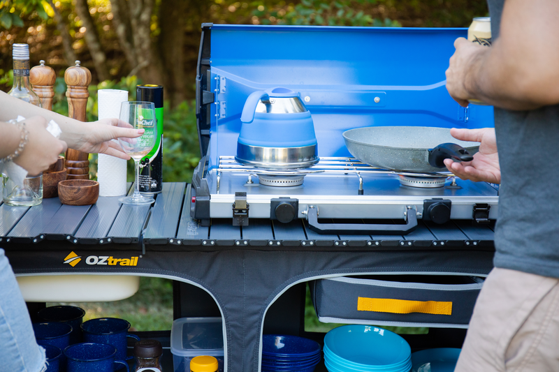 Prepping food and washing dishes is simple with modern outdoor camp kitchens. Many are quick to setup with and portable including integrated sinks, double cupboards, and benchtops for meal prep.