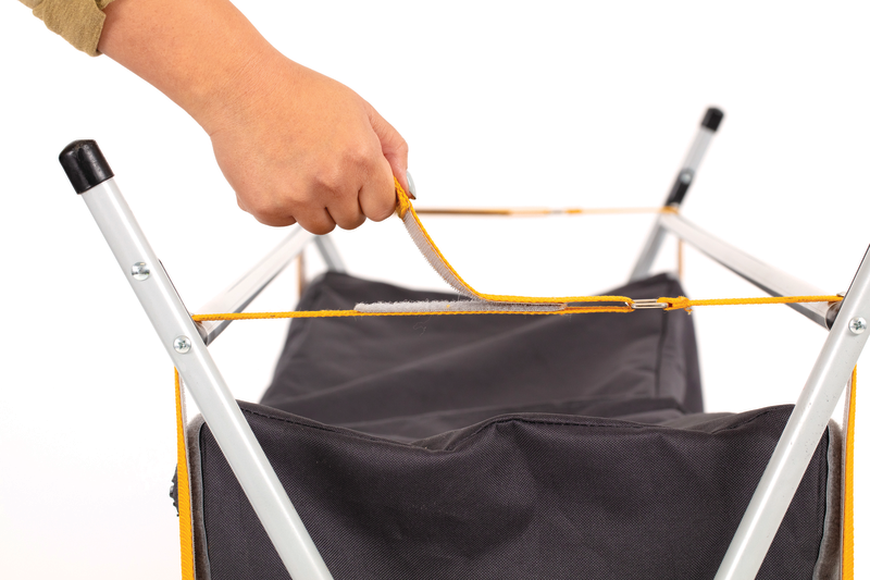 Quick set-up steel frame with aluminium slat top.
