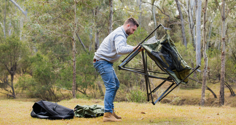 The Easy Fold 1 Person Stretcher Tent is a compact, no-assembly tent that provides comfort with a No-See-Um mesh inner, durable flysheet, and powder-coated steel frame. Ideal for solo campers.