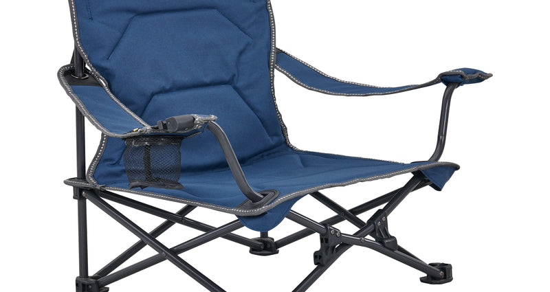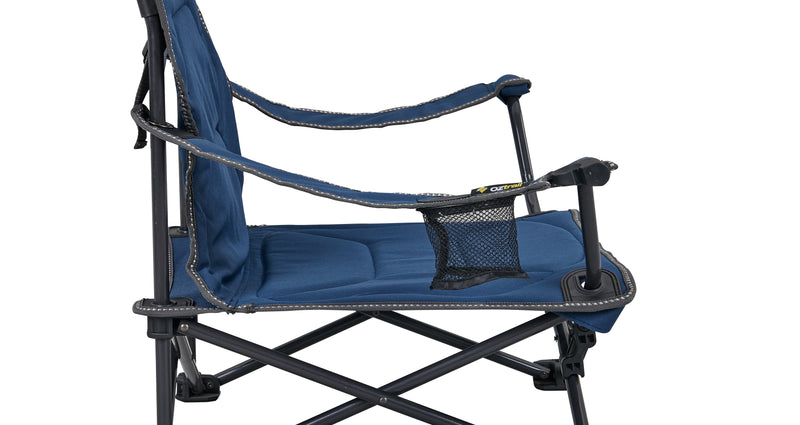The OZtrail Festival Chair is perfect for outdoor events, providing comfort with its padded seat and backrest. Made with a strong high-tensile steel frame and rugged polyester fabric, it also features wide arms and a large drink holder and wine glass holder for convenience.