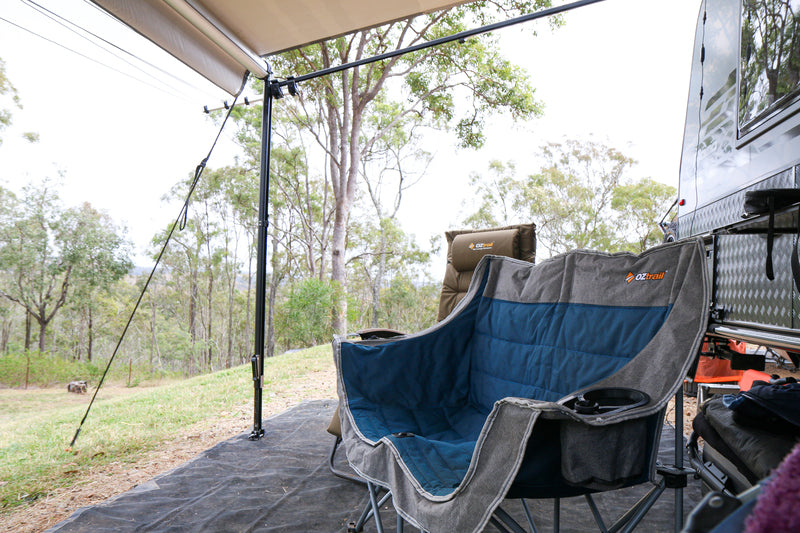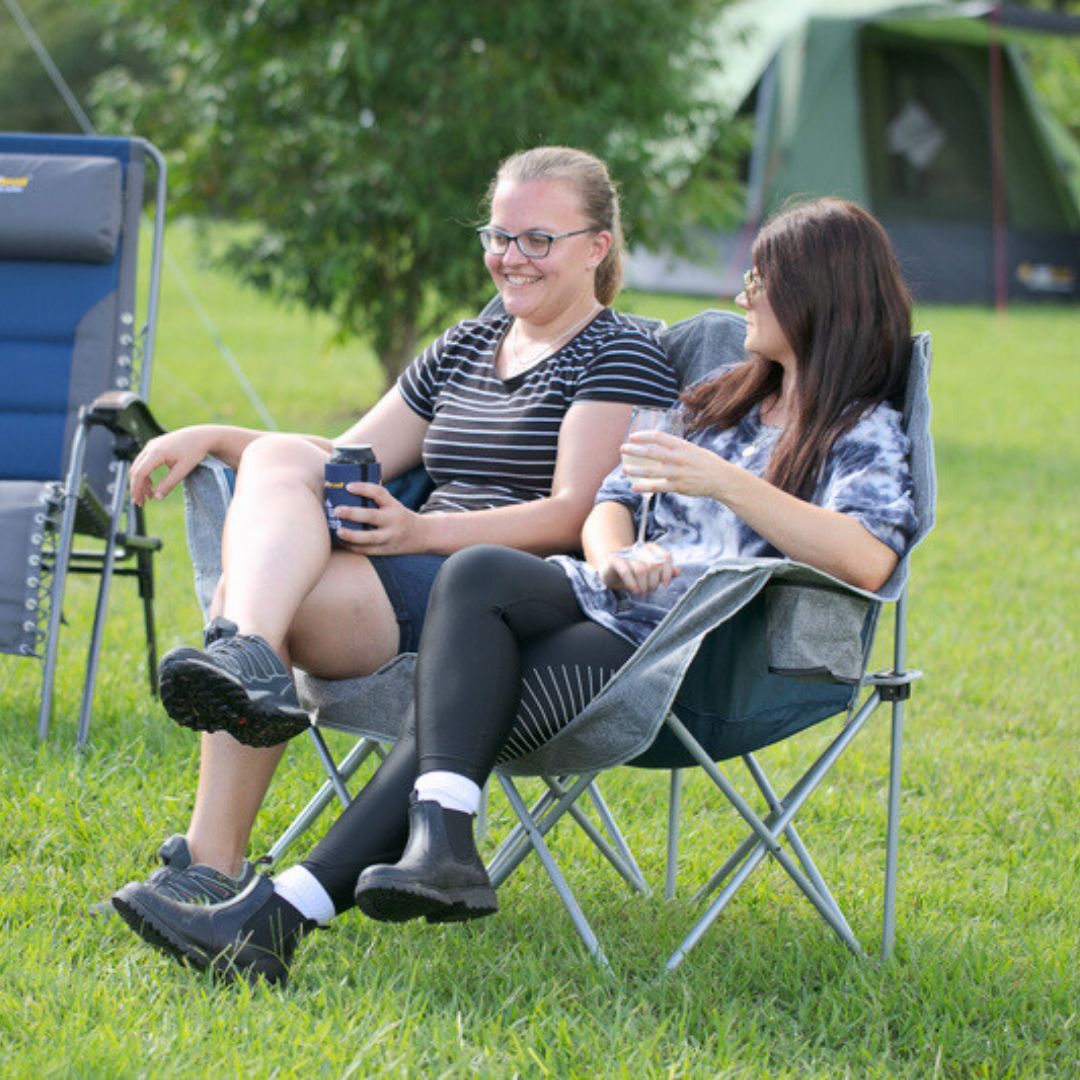Relax in style with the OZtrail Galaxy 2 Seater Padded Chair, your go-to double camping chair for outdoor comfort and durability. Designed for two people, this spacious seat is built with quality materials, featuring a strong 22mm steel frame, vertical leg stabilisers, and tough fabric to ensure stability wherever your adventures take you.