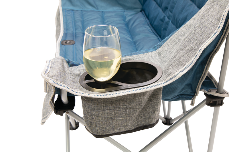 The padded seats and backrests provide maximum comfort, while the removable covers allow for easy cleaning and long-lasting use. With built-in wine glass holders, an insulated drink holder, and a rear mesh pocket, this chair keeps all your essentials within arm’s reach.