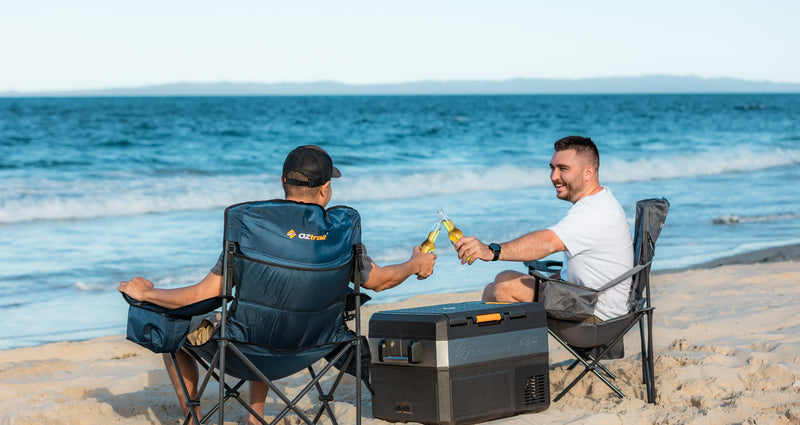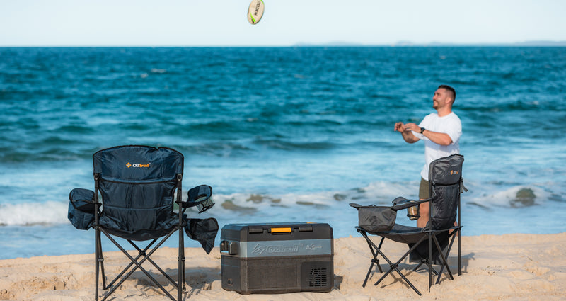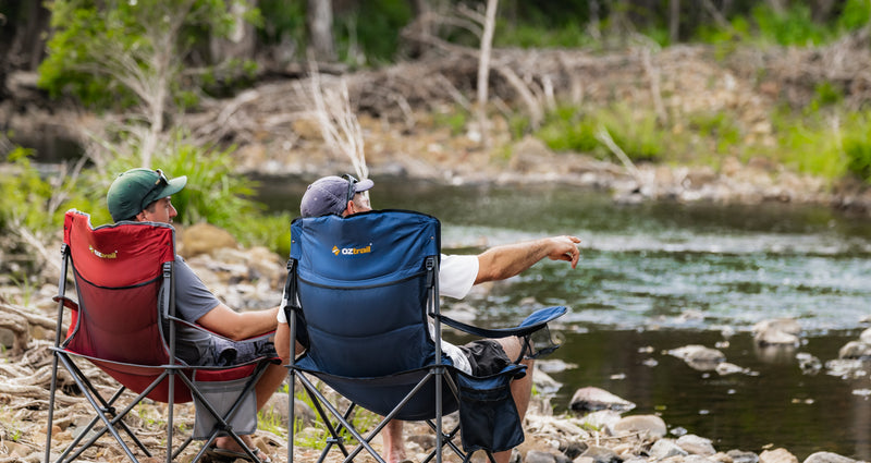 The OZtrail Getaway Chair is a large, comfortable, and super sturdy chair, exclusive to Anaconda Stores. With a weight capacity of 130 kg, this chair features a high padded back and padded armrests for a relaxed fit. It includes a handy cup holder, a side cooler for beverages, and a side pocket for essentials. The strong steel frame and cross-bracing hubs offer extra reinforcement, ensuring durability for any camping or outdoor adventure.