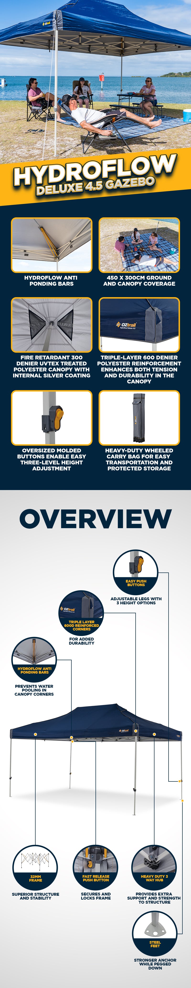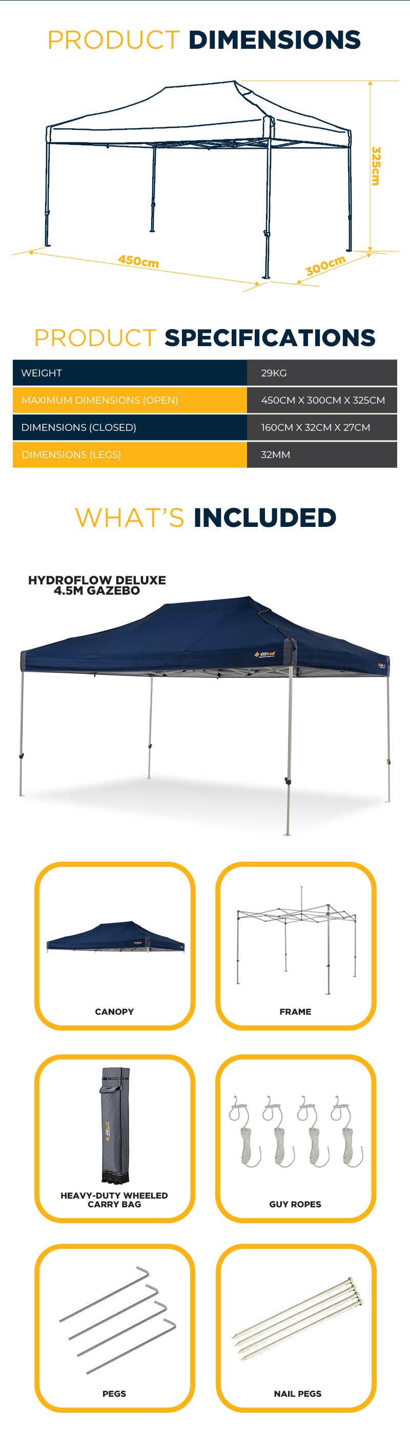 Hydroflow Deluxe 4.5 Gazebo - Navy
