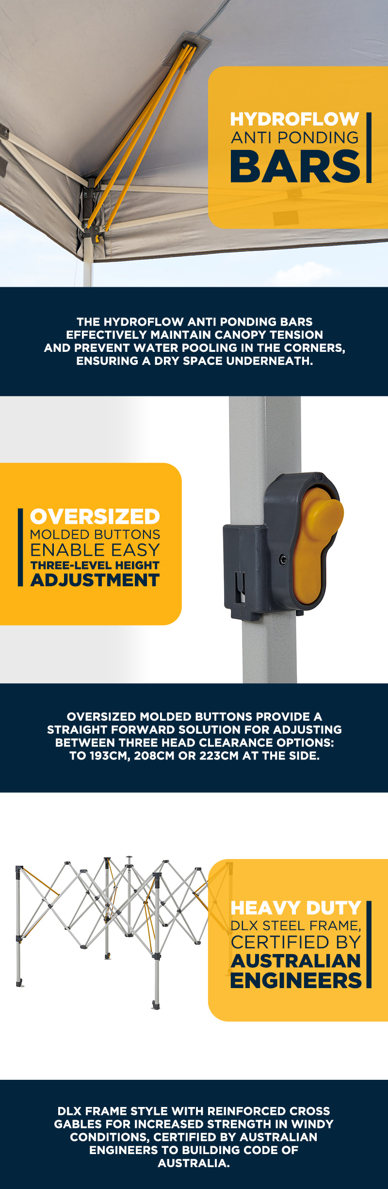 The Hydroflow Deluxe Anti Pooling Gazebo 6x3 is built for outdoor adventures, offering reliable protection and ample shade for camping trips, market stalls, and large gatherings. Designed for durability, its heavy-duty frame provides stability in...
