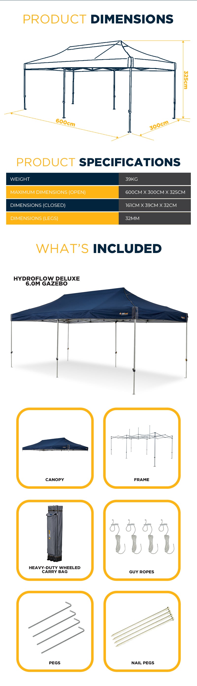 Hydroflow Deluxe 6.0 Gazebo - Navy