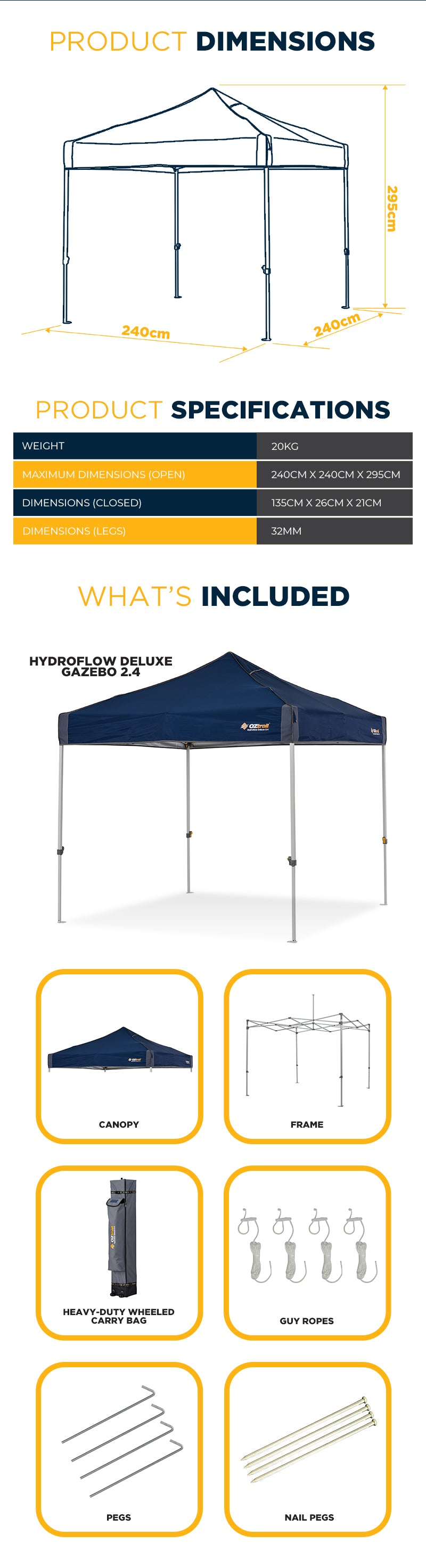 Updated with Hydro Flow Anti Ponding Bars, this compact 2.4m Gazebo ensures no water pooling while delivering durable performance and sun protection for all your outdoor fun. The polyester canopy provides reliable shelter, while the...