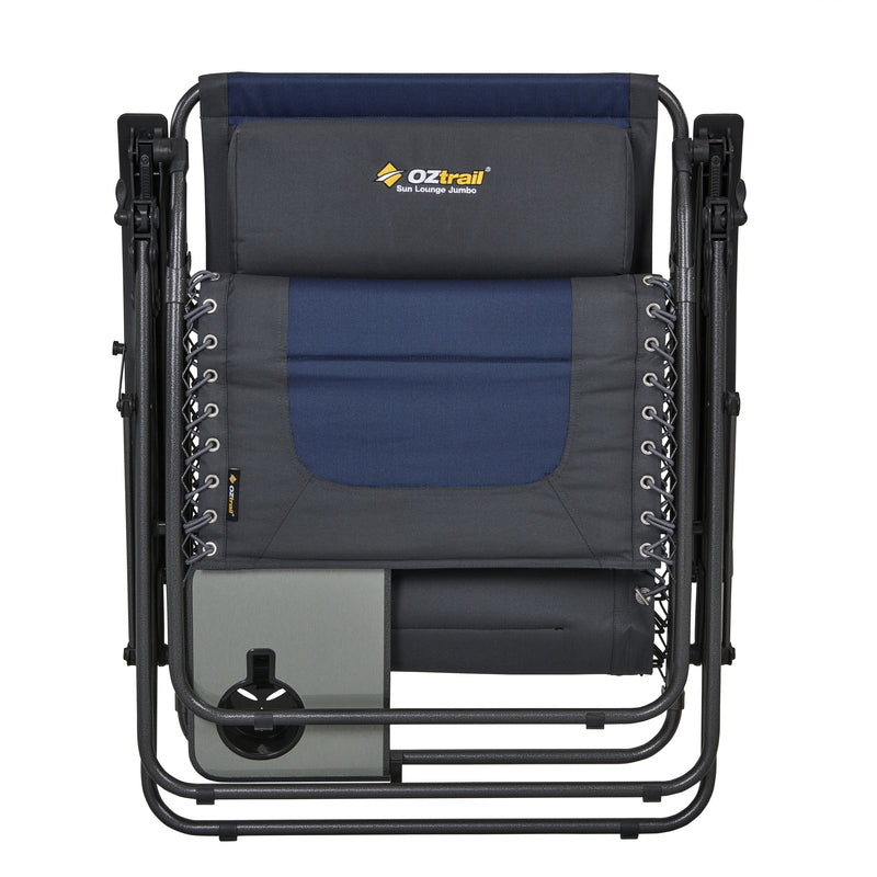 Crafted from tough 600D polyester fabric, the Jumbo Sun Lounge is built to withstand the outdoors and everyday use. A convenient built-in side table with an integrated cup holder keeps your drink, phone, or book within arm’s reach, so you never have to get up when you’ve found your perfect position.