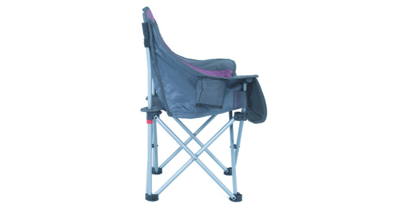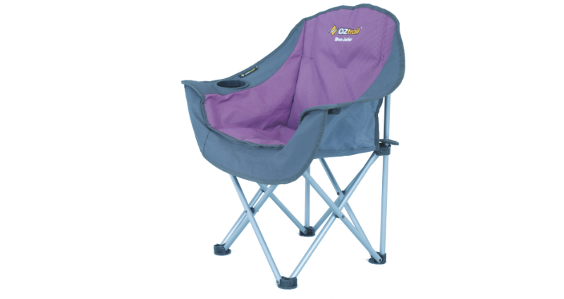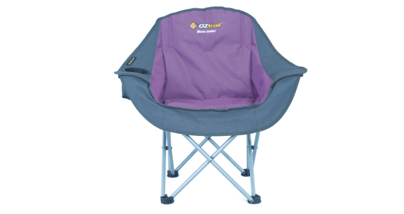 Safe and comfortable, this junior moon chair is designed for kids. It features a strong steel frame, padded fabric, and a drink holder. The chair folds compactly and comes with a carry bag for easy transport.