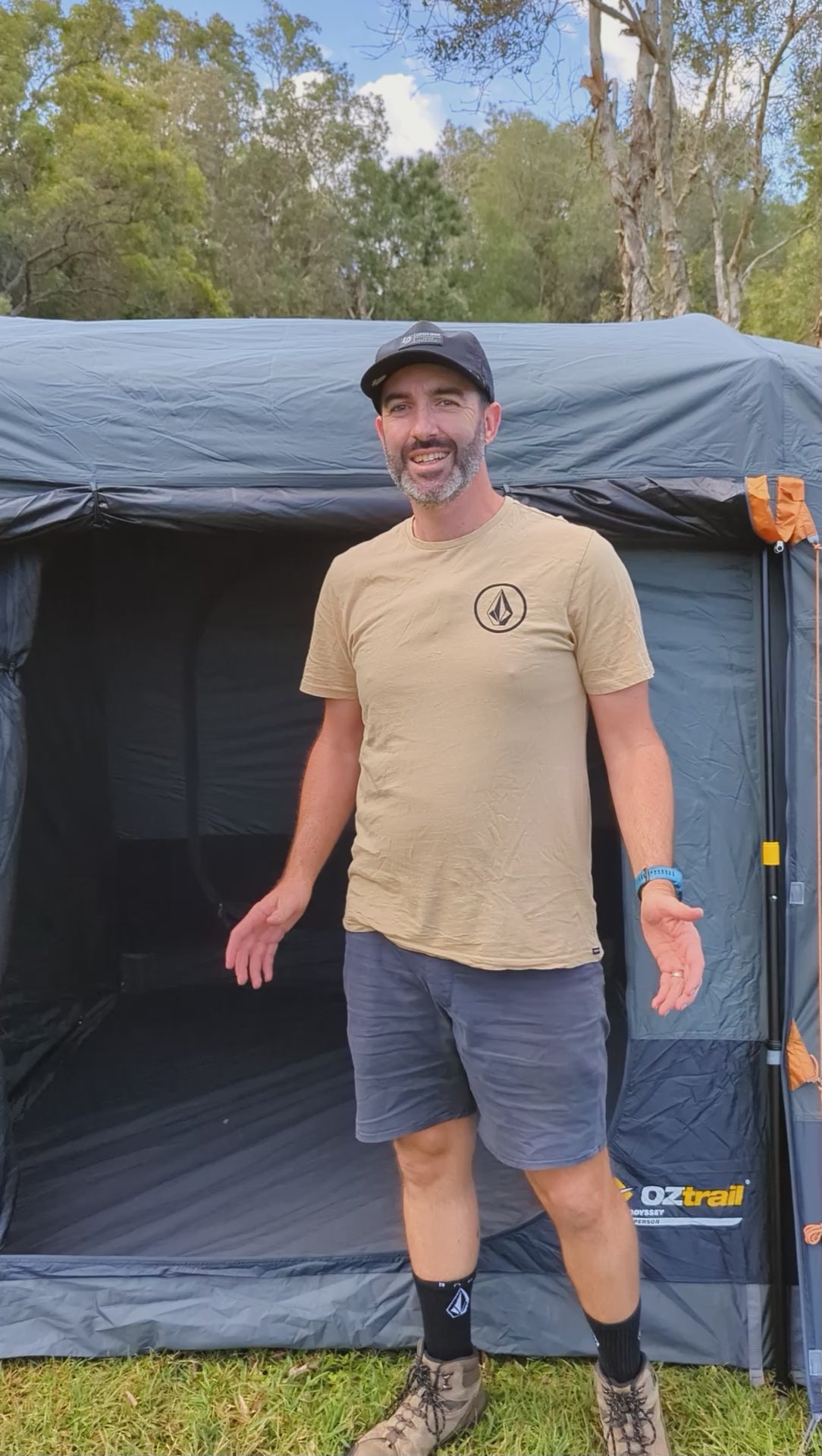 The Odyssey 10 Person Tent is the perfect tent for family camping, offering a massive footprint with three spacious rooms for the whole family. Designed for comfort and convenience, this family camping tent features OZtrail’s Fast Frame® system for a quick and easy setup, making it one of the best camping tents for families and groups. With generous head room, this size tent ensures a comfortable, spacious interior for hassle-free movement.