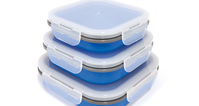 This 3-pack of collapsible food containers is made from BPA-free silicone and features clip lock lids. The containers are microwave and dishwasher safe, making them ideal for storage and transport.