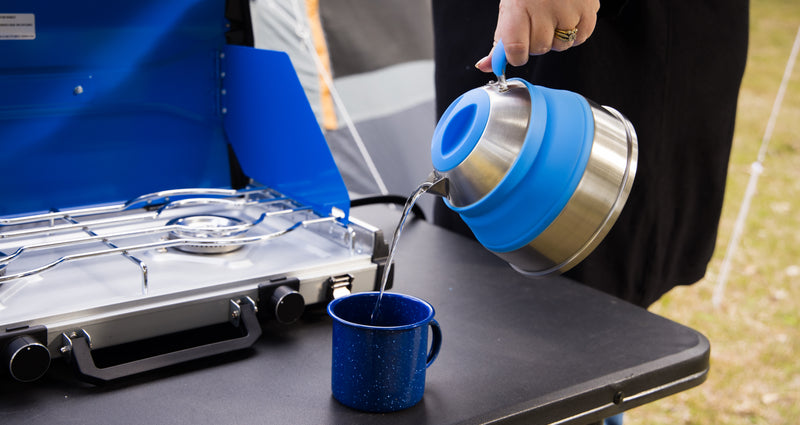 This 2L pop-up kettle is perfect for camping or home use. Made from food-grade silicone with a 304 stainless steel frame, it collapses easily for compact storage and can be placed directly on heat sources.