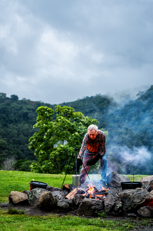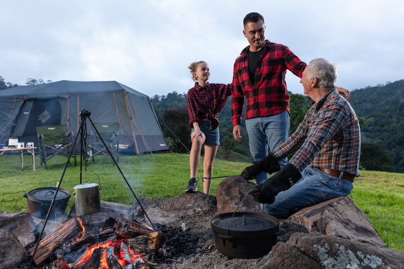 A sturdy tripod made from 9mm cold roll steel with adjustable chain for camp ovens or billies. Flame proof and heat resistant, it is designed for outdoor cooking.